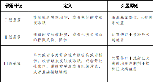 根据接触方式和暴露程度,狂犬病暴露分为三级:
