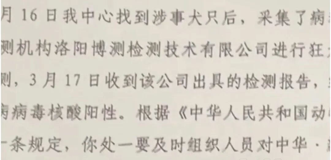 更令人担忧的是,咬伤辛女士的流浪狗在被小区物业控制后,于三四天内死亡。事后相关检测结果显示,该狗携带狂犬病毒,为阳性。